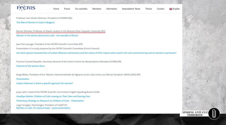 У 2016 році в столиці Болгарії, Софії, відбулася конференція FECRIS, на якій були присутні її члени з різних країн. З офіційних документів дізнаємося, що її учасником був і Роман Силантьєв [4], [5].