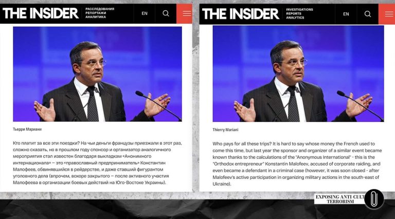 Ця стаття лише коротко торкається діяльності двох антикультових діячів — одного російського та одного французького, — обидва з яких тією чи іншою мірою пов’язані з Костянтином Малофєєвим. Хоча цей зв’язок може здатися випадковим при розгляданні окремих епізодів, насправді він далеко не унікальний. Цілі, яких домагаються антикультисти в європейських країнах, часто підозріло збігаються з інтересами їхніх російських колег, врешті-решт приносячи користь ідеологам концепції «руського міра».