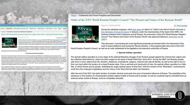 Варто нагадати, що ідеологічний і координаційний центр міжнародного антикультизму наразі знаходиться в Росії. Це російська прорелігійна асоціація РАЦИРС на чолі з Олександром Дворкіним. З 2009 року президент російського РАЦИРСу також обіймав посаду віцепрезидента Європейської антикультової федерації FECRIS, а з 2022 року входить до ради директорів FECRIS. Олександр Дворкін неодноразово був помічений у тісній взаємодії з людьми та організаціями, що мають прямі зв’язки з ФСБ (спадкоємцем радянського КДБ). Відповідні факти вже частково розкриті на порталі actfiles.org і на нашому сайті.