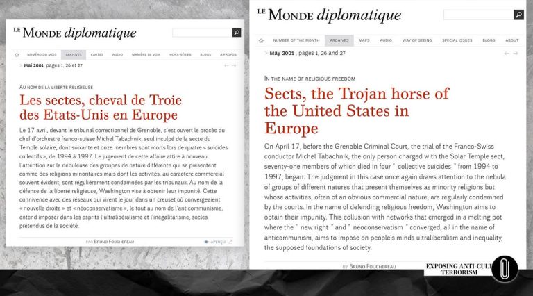 У випадку з міжнародною мережею антикультових агентів, задаючи питання, чиї цілі вони реалізують і кому служать, у світлі їхньої вкрай антидемократичної діяльності та дискредитуючих зв’язків відповідь стає все більш риторичною. Але щоб не бути голослівними, наведемо ще кілька фактів.